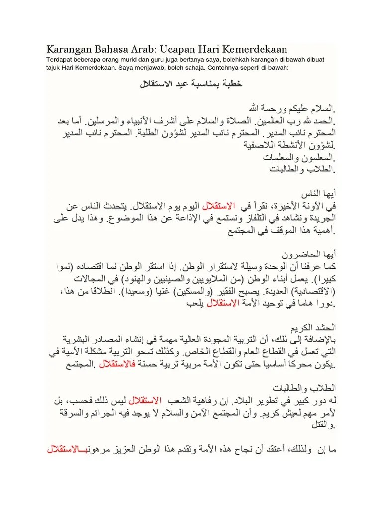 Karangan ini dimulakan dengan menceritakan perihal sambutan perayaan keagamaan yang diadakan di negara kita. Contoh karangan bahasa arab tentang hari pendidikan nasional.